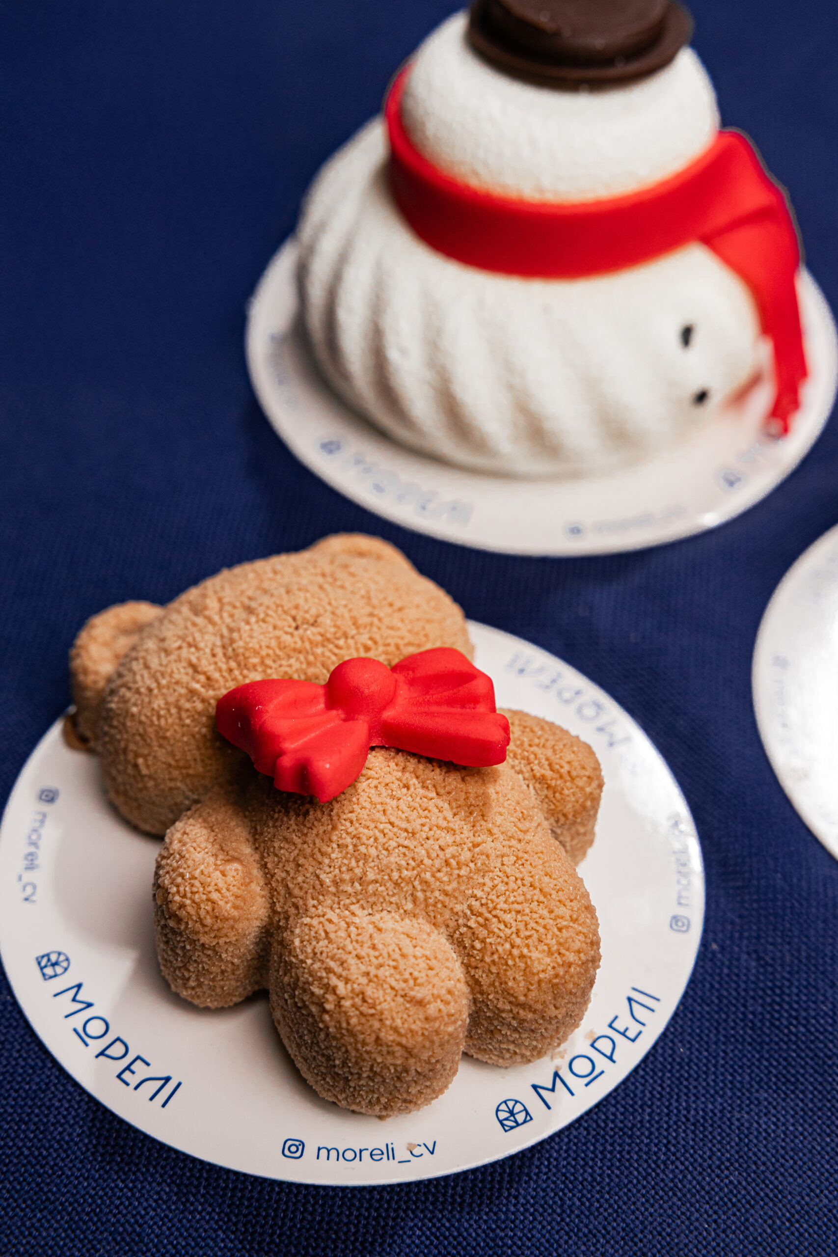 Карамелізована груша з пряними травами, фундуковий бісквіт, шоколадний мус і крем-чіз утворюють десерт із витонченим поєднанням фруктової соковитості, насиченого горіхового смаку та делікатної кремової текстури